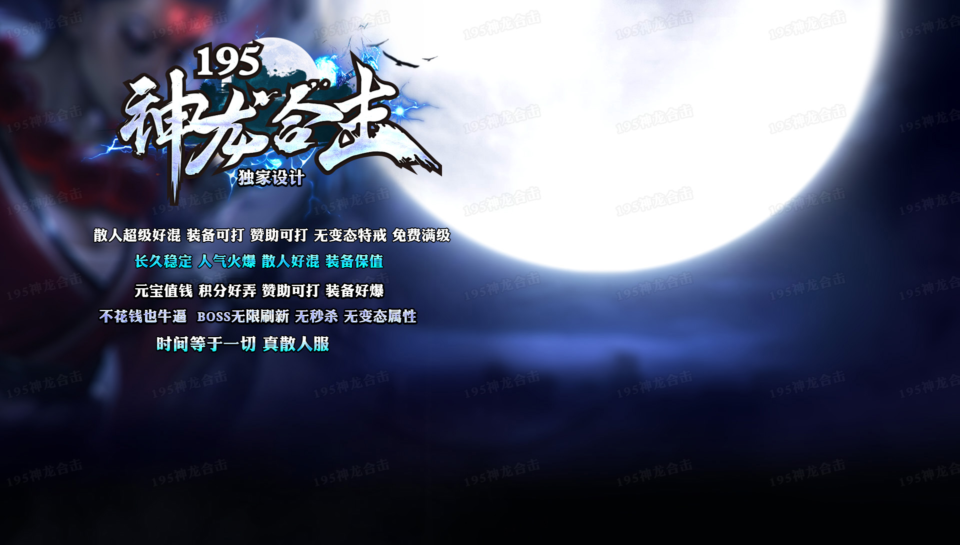 195神龙合击独家设计,BOSS无限刷新 无秒杀无变态属性 时间等于一切 真散人服!